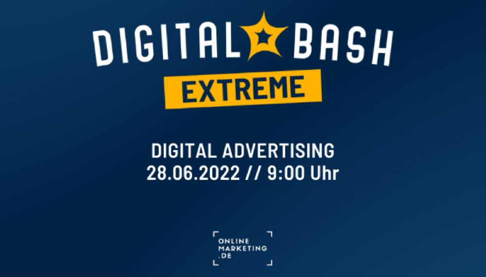Wir haben mit dem Digital Bash eine Webkonferenz-Reihe etabliert, die es in Deutschland so vergleichbar nicht gab. Mit dem „Digital Bash – EXTREME“ haben wir die Möglichkeit viel tiefer in verschiedene Themengebiete einzutauchen, um dir noch bessere Inhalte anbieten zu können. In der EXTREME-Ausgabe am 28.06.2022 vertiefen wir dein Fachwissen im Bereich Digitales Advertising oder ermöglichen dir den Einstieg in diesen Bereich, um dein Wissen neu aufzubauen.
