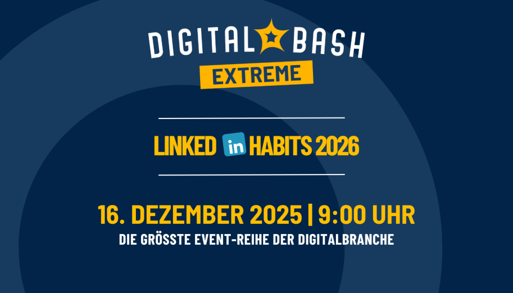 LinkedIn wandelt sich – und mit ihm die Spielregeln für erfolgreiches Marketing. Beim Digital Bash EXTREME – LinkedIn Habits 2026 erfährst du am 16. Dezember, für 129 EURO zzgl. Mehrwertsteuern, wie du dein LinkedIn Game vorantreiben kannst.