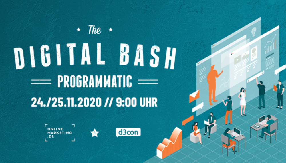 Diese Digital Bash Ausgabe findet dieses Mal an zwei Tagen (24. + 25.11.2020) statt. Ein Event organisiert von Brancheninsidern für einen einzigartigen Wissensvorsprung: Spezialausgabe mit dem Fokus Programmatic Advertising. Sehe die spannenden Vorträge und Masterclass der d3con mit hochkarätigen Speakern an!
