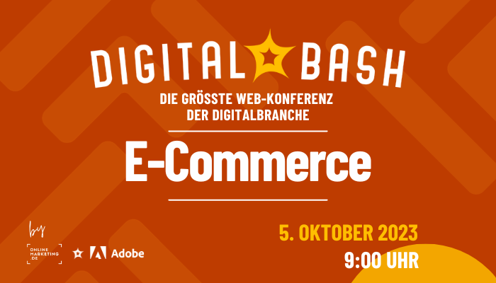 Der Digital Bash – E-Commerce gehört zu den Highlights unserer Web-Konferenzreihe, bietet dir facettenreiche Hands-on-Tipps für deinen Shop-Betrieb, das Commerce Marketing sowie die Umsatzsteigerung und informiert dich über aktuelle Shopping-Trends und -Potentiale. Expert:innen von Adobe, Mollie, Canto und Co. geben darüber hinaus regelmäßig Best Practices und Tool-Tipps zum Besten.