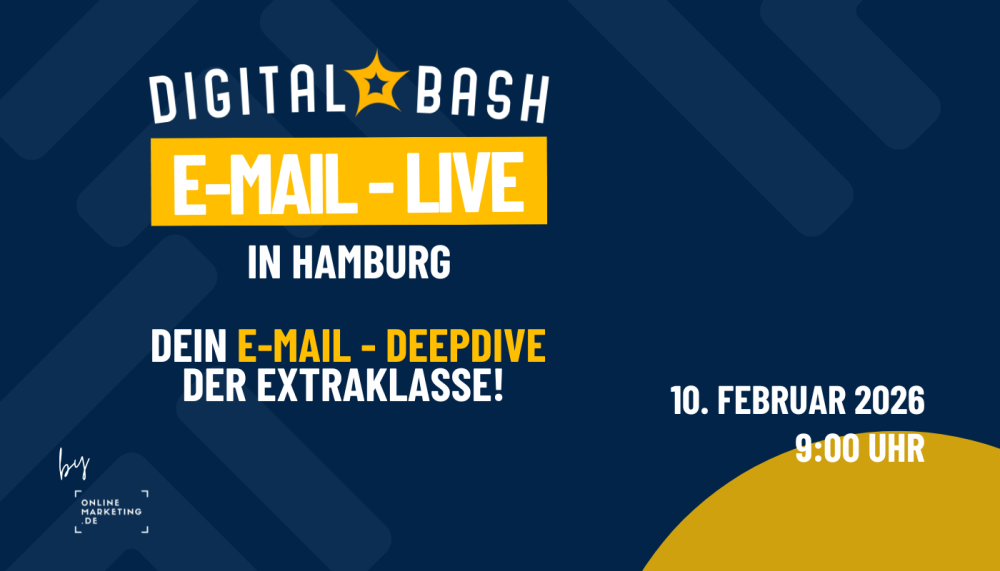 Am 10. Februar 2026 ist es wieder so weit! Die beliebten EXTREME-Formate des Digital Bash gehen live. Wir laden dich herzlich zum hybriden E-Mail LIVE - Digital Bash ein, wo wir das Beste aus zwei Welten vereinen. Freue dich auf ein aufregendes Flair, wenn der Digital Bash EXTREME die virtuelle Welt mit physischem Event-Charakter zusammenbringt!