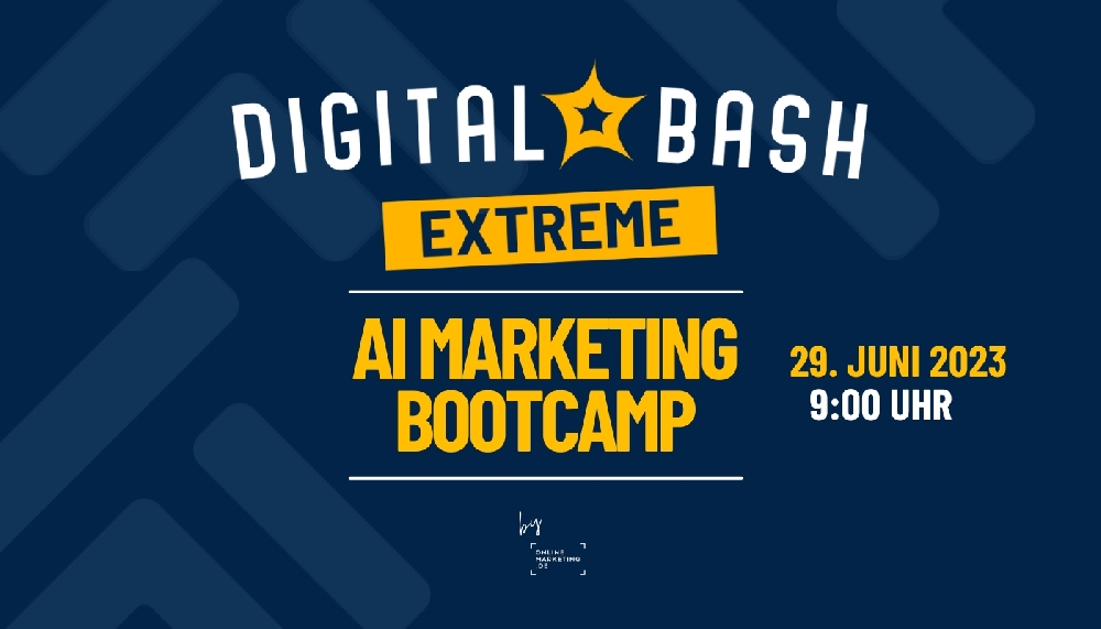 Der Digital Bash EXTREME - AI geht in Runde 2! Lerne beim AI Marketing Bootcamp vom 29.06. für nur 99,00€ zzgl. MwSt. alles, um mit KI unersetzbar zu werden!