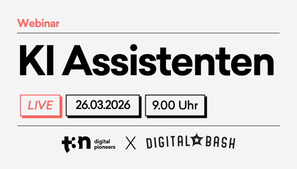 Das exklusive, kostenlose Event von t3n Skills und Digital Bash zum Thema KI Assistenten: Erfahre aus erster Hand, wie die neuesten Trends und Innovationen im Bereich KI erfolgreich im Unternehmen integriert werden können. Erhalte praxisnahe Einblicke und wertvolle Tipps, um mit KI deine tägliche Arbeit zu revolutionieren und die Arbeitswelt von morgen schon heute zu gestalten. Sei dabei und gestalte die Zukunft aktiv mit! Jetzt anmelden zu diesem spannenden Event.