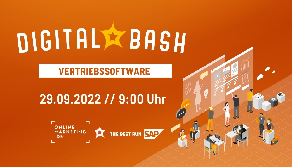 Fünf Vorträge, neun Expert:innen: Beim Digital Bash – Vertriebssoftware by SAP am 29. September ab 9 Uhr gibt es die volle Ladung Wissen für deinen Vorsprung in der Digitalbranche. Erfahre unter anderem, welche Power Features Vertriebsverantwortliche bei ihrer täglichen Arbeit unterstützen können, wie du fast wie von selbst exzellente Verkaufszahlen erreichst und deine Kund:innen entlang der gesamten Customer Journey begeisterst. Sichere dir jetzt dein kostenloses Ticket und freu dich auf einen Vormittag, der dir spannende Insights und geballtes Expert:innenwissen liefert.