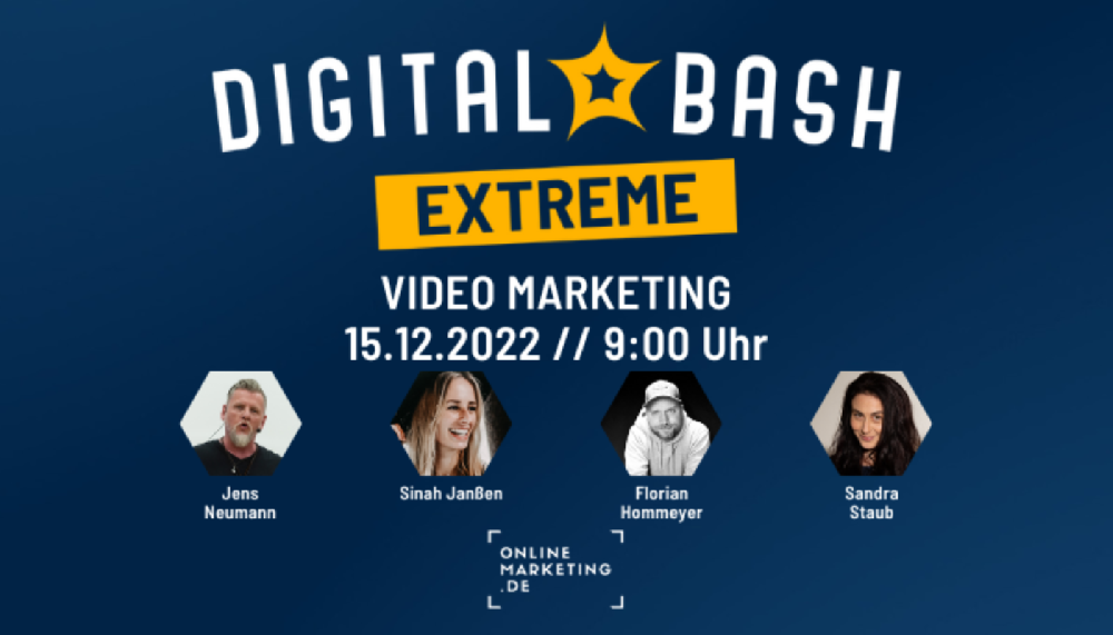 Der Digital Bash EXTREME ist ein Projekt von OnlineMarketing.de, einem der relevantesten und reichweitenstärksten Portal der Digitalbranche mit mehr als 350.000 monatlichen Unique Usern. Durch zahlreiche On- und Offline Events und unzählige, selbst ausgerichtete Webinare in der Vergangenheit konnten wir große Expertise aufbauen. Wir freuen uns sehr, immer eine Event-Weiterempfehlungsrate von über 95% generiert zu haben.