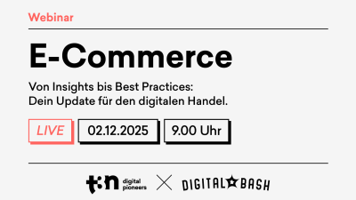 Das exklusive, kostenlose Event von t3n und Digital Bash zum Thema E-Commerce: Erfahre aus erster Hand, wie die neuesten Trends, Technologien und Strategien im E-Commerce erfolgreich eingesetzt werden, um dein Online-Business zukunftssicher zu gestalten. Erhalte praxisnahe Einblicke und wertvolle Tipps von Expert:innen, wie du Kund:innenerlebnisse optimierst, Conversion Rates steigerst und dein digitales Wachstum nachhaltig vorantreibst.