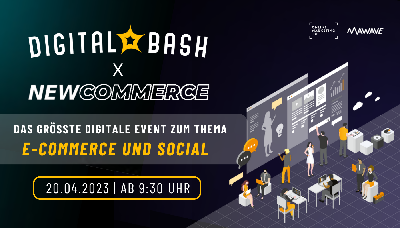Alle Events anzeigenDigital Bash und New Commerce werfen ihre Eventpower in einen Topf und stellen ein Knaller Programm mit dem Fokus auf der Verschmelzung von E-Commerce und Social auf die Beine.