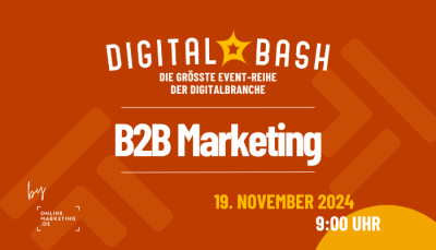 Alle Events anzeigenBeim Digital Bash – B2B Marketing ist der Name Programm: Alles dreht sich um Geschäftsbeziehungen zwischen Unternehmen und deren Optimierung. Im Fokus stehen dabei Themen wie Personalisierung, Customer Journey und Targeting. Gemeinsam mit B2C bildet B2B einen festen Bestandteil des Digital Bash und gilt als zentrale Anlaufstelle für Business-Fragen.